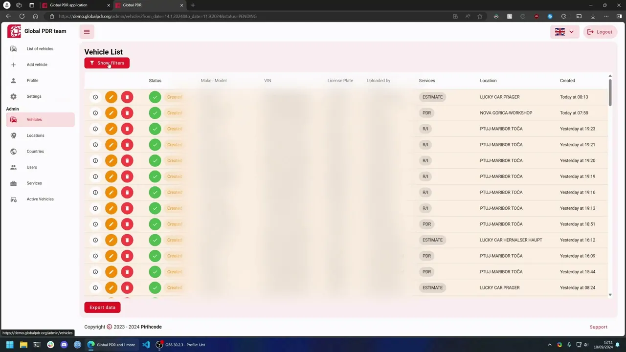 Global PDR Application is a web-based platform designed for logging and tracking vehicles, primarily used by car repair shops. Optimized for mobile devices, it also supports Progressive Web App (PWA) functionality, ensuring flexibility and easy customization for specific company needs. Technicians can add new vehicles along with detailed damage information, while administrators have full control over managing the data.